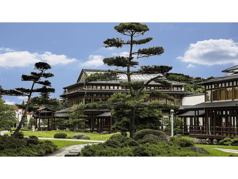 Nur wenige Schritte vom Rosarium entfernt erwartet Sie der Japanische Garten, ein Ort der Ruhe und fernöstlichen Ästhetik. Wasserflächen, Laternen, geschwungene Brücken und kunstvoll gesetzte Pflanzenbilder schaffen eine meditative Stimmung. Der Garten vermittelt sehr eindrucksvoll die Prinzipien japanischer Gartenkunst, die sich nach Harmonie, Balance und einem bewusst gelenkten Blick auf ausgewählte Szenerien richten. Während Sie durch die Anlage schlendern, erleben Sie den faszinierenden Kontrast zum Rosengarten – ein Wechsel zwischen üppiger Blütenfülle und reduzierter Klarheit.
