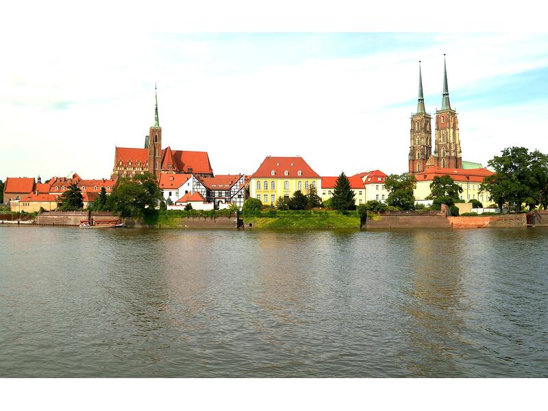 Auf der Dom- und Sandinsel begann im 9. Jh. die Geschichte Breslaus. Weithin sichtbar prägen die zwei hohen Türme der Johannes dem Täufer geweihten Kathedrale die Silhouette der Stadt. Das imposante Gotteshaus gehört zu den schönsten gotischen Baudenkmälern. Nur wenige Schritte entfernt erhebt sich mit der unscheinbaren Kirche St. Ägiden, das älteste erhaltene Gebäude der Stadt. Von Licht durchflutet begrüßt Sie die Backsteinkirche Maria auf dem Sande. Auf den schlanken und hohen Säulen des Mittelschiffs ruht ein eindrucksvolles Sterngewölbe.