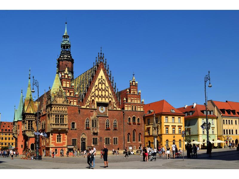 Nach einer individuellen Mittagspause erkunden Sie bei einem gemeinsamen Spaziergang das historische Zentrum von Breslau. Ausgangpunkt ist der Rynek, der glanzvoll restaurierte Ringplatz im Herzen der Stadt. Sie blicken auf die Fassaden stolzer Bürgerhäuser und sehen das Alte Rathaus mit seinen markanten Giebeln (Außenbesichtigung).