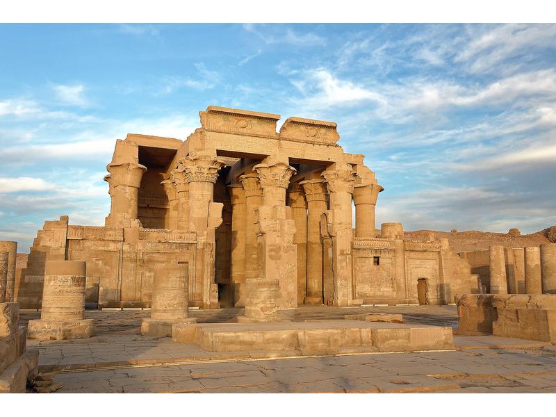 Rückkehr zum Schiff und entspannende Kreuzfahrt nach Kom Ombo. Mittagessen an Bord. An den Ufern sehen Sie auch noch die traditionellen Schöpfräder, die stetig das lebensspendende Nilwasser seit Jahrtausenden über ein Bewässerungssystem auf die Äcker leiten. Ein Spaziergang führt zu einem Doppelheiligtum, das in ptolemäischer Zeit dem krokodilgestaltigen Gott Sobek und dem Falkengott Horus geweiht war.